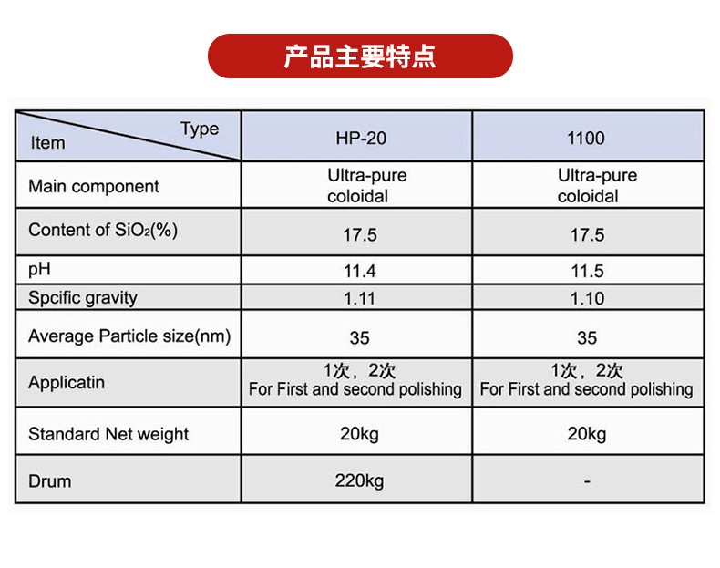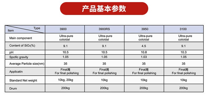磨料与配方优势:该系列多采用高纯度胶体二氧化硅作为核心磨料,纯度普遍≥99.9%,且磨料颗粒经球形化处理,粒径分布窄(多集中在 5 - 100nm)。这种设计既能通过机械研磨高效去除硅片表面多余材质,又能避免尖锐颗粒造成的划痕、挖伤等缺陷,抛光后硅片表面精度可达到埃级标准。同时部分型号添加专用缓蚀剂与分散剂,防止抛光过程中硅片表面氧化,且避免磨料团聚影响抛光均匀性。